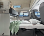 Both camper vans feature auxiliary heating, easy-to-clean wood-effect floor, rear privacy glass and flip-open windows. They can be specced with a premium sound system and racks for bikes and sports equipment.